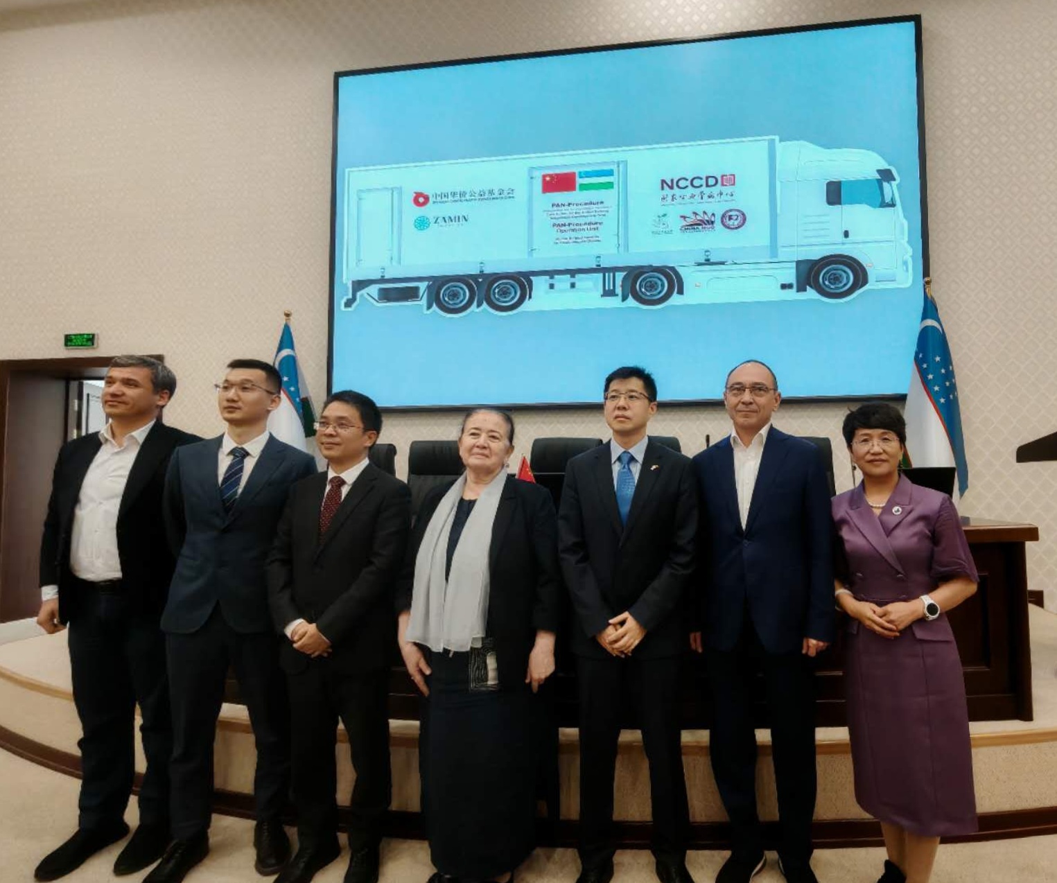 在與會嘉賓的見証下,舉行了移動手術車的象征性交接儀式。鄭曉輝代表基金會向烏方捐贈該醫療設備,烏茲別克斯坦衛生部副部長埃爾米拉·巴西特哈諾娃代表烏方見証並接收了車輛模型。該移動手術車將待實際運抵后正式投入服務。