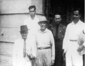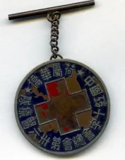 左圖為吳雲燦(右二)與出發去延安的印度醫療隊合影﹔右圖為荷屬華僑醫療隊徽章