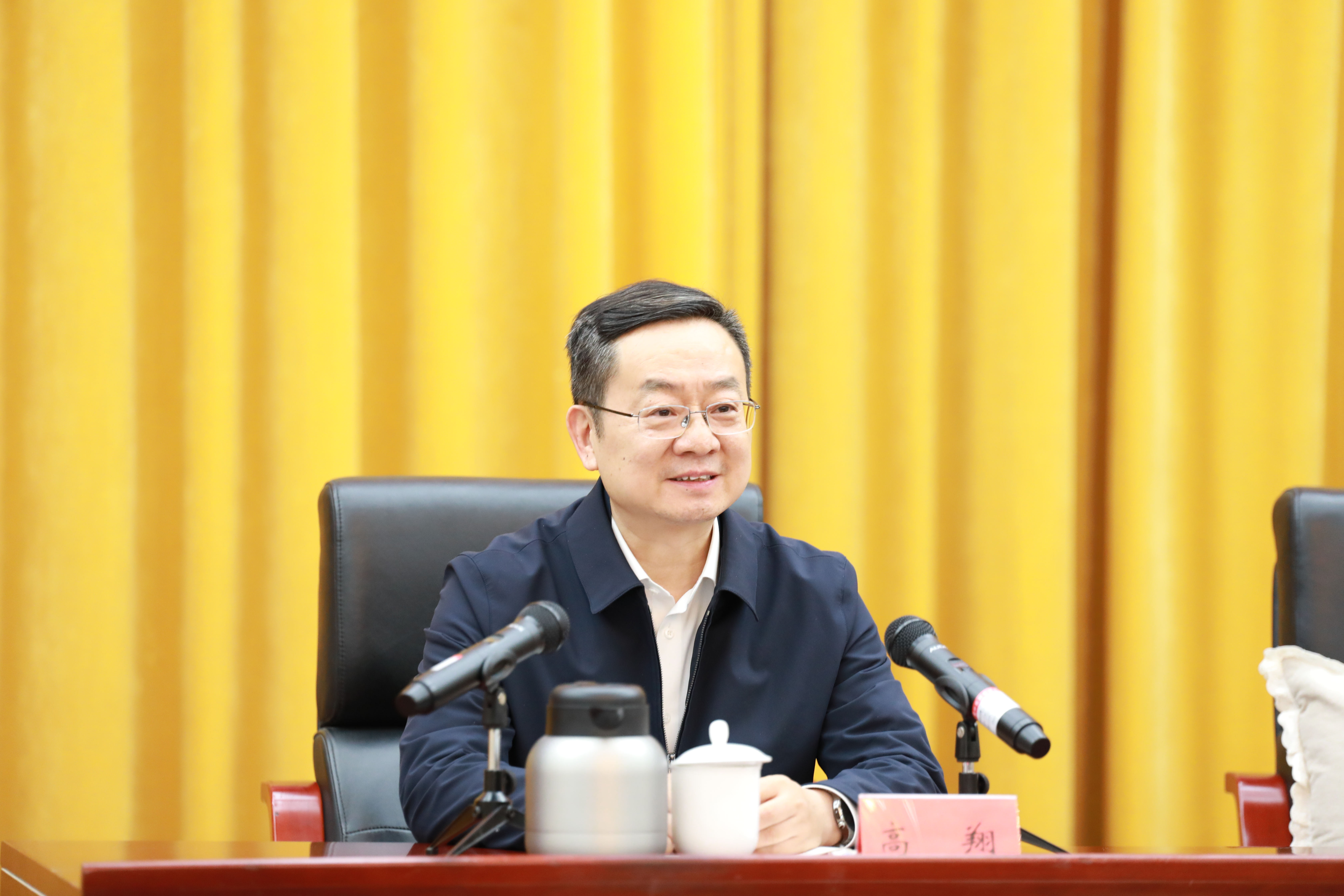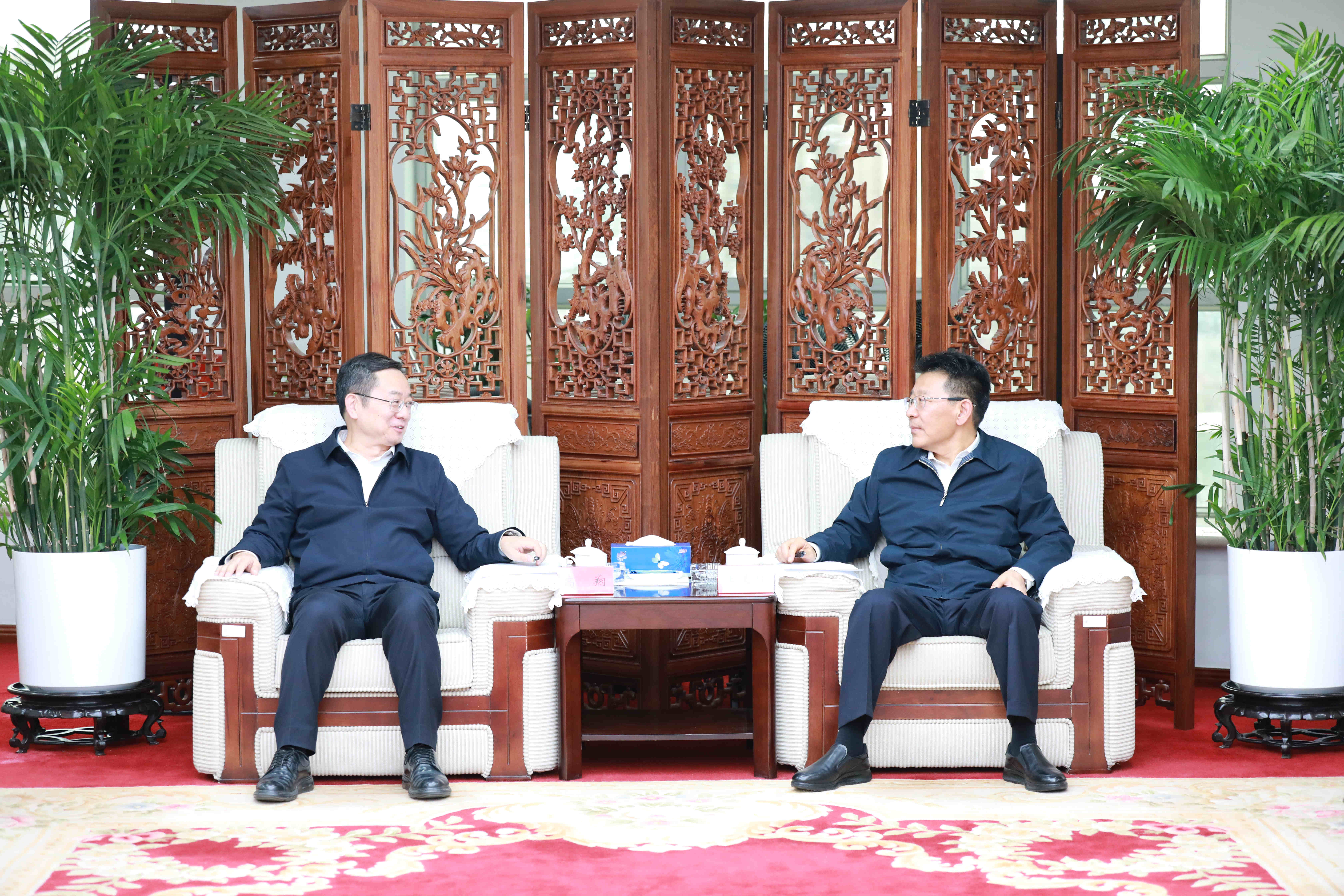 會前,王靈桂與高翔進行工作交流。