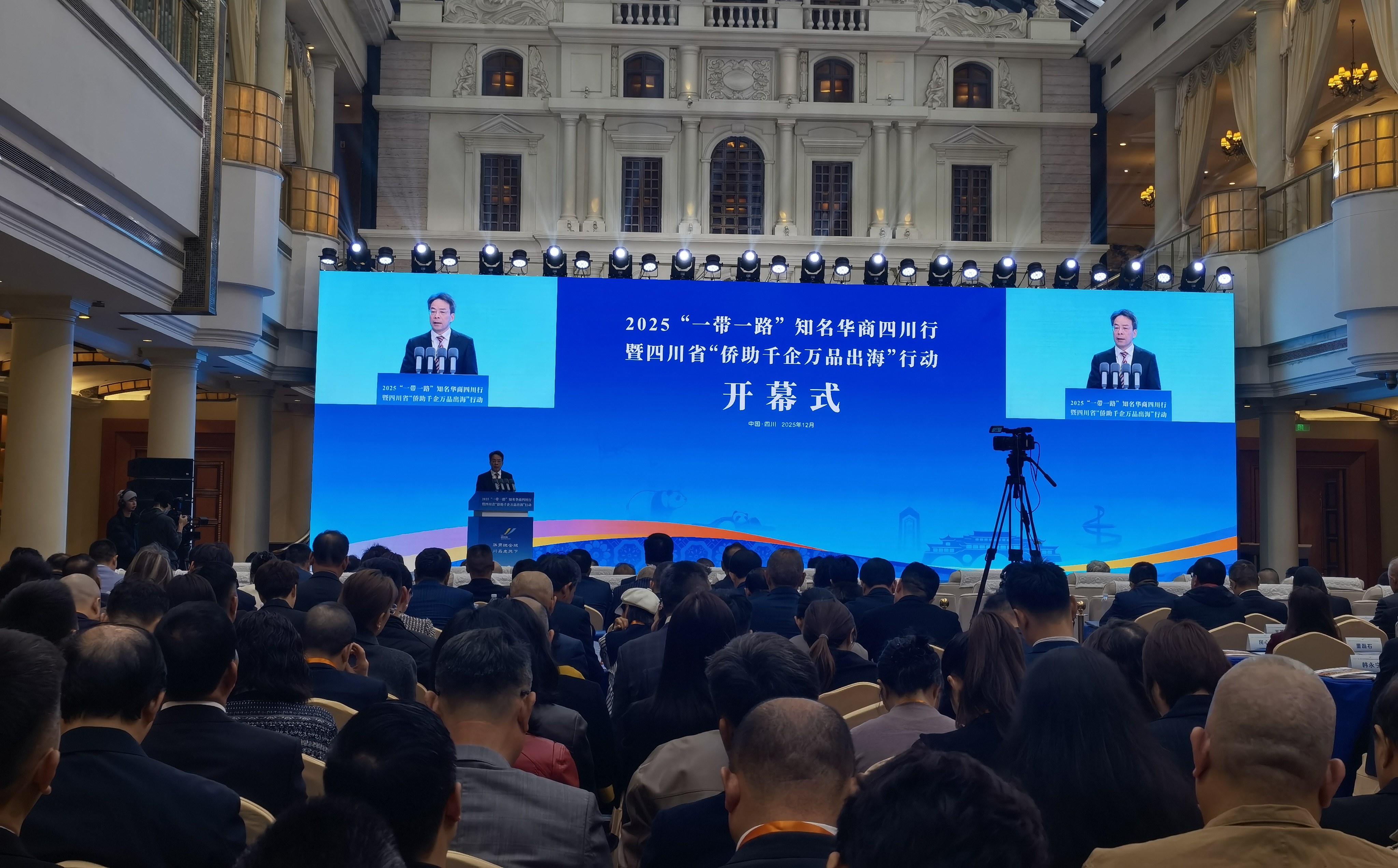 12月2日上午,以“華商鏈全球 川品走天下”為主題的2025“一帶一路”知名華商四川行暨“僑助千企萬品出海”行動在四川成都開幕。中國僑聯黨組成員、副主席連小敏,四川省委常委、統戰部部長普布頓珠出席開幕式並致辭。來自美國、俄羅斯、法國、德國、新加坡等63個國家和地區的海外知名華商、華僑華人社團負責人、僑資企業負責人以及四川省、重慶市、成都市等省市相關部門、外貿企業負責人共300余人出席活動。