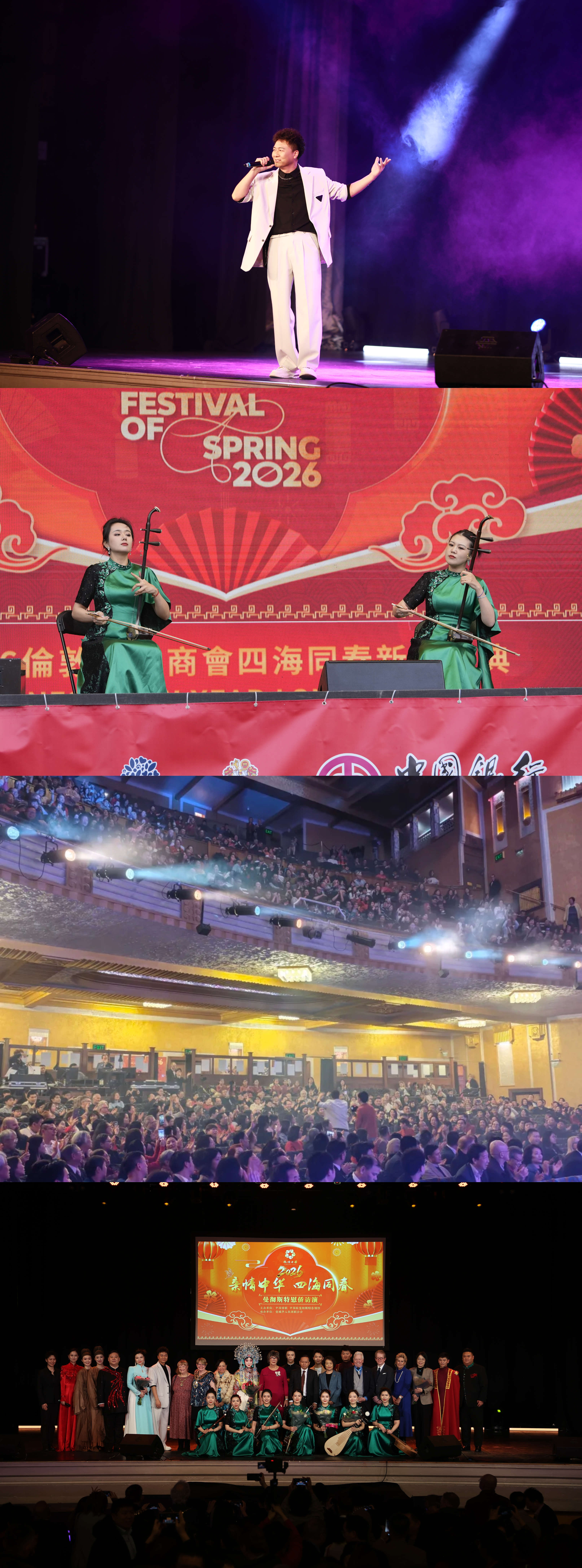 當悠揚的絲竹管弦之聲掠過曼徹斯特的雨夜,跨越山海的惦念在劇場悄然升溫。當地時間2月23日晚,2026年中國僑聯“親情中華·四海同春”歐洲團訪演在曼徹斯特斯托克波特廣場劇場如約而至。1000余位觀眾齊聚一堂,在流光溢彩的藝術殿堂中同慶馬年新春,現場掌聲雷動,觀眾好評如潮。