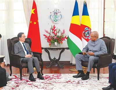本報維多利亞3月30日電 (記者楊謳)當地時間2026年3月28日至30日,應塞舌爾副總統皮拉伊邀請,國家副主席韓正訪問塞舌爾,在維多利亞會見塞舌爾總統赫米尼耶,同副總統皮拉伊會談,並出席慶祝中國塞舌爾建交50周年招待會。