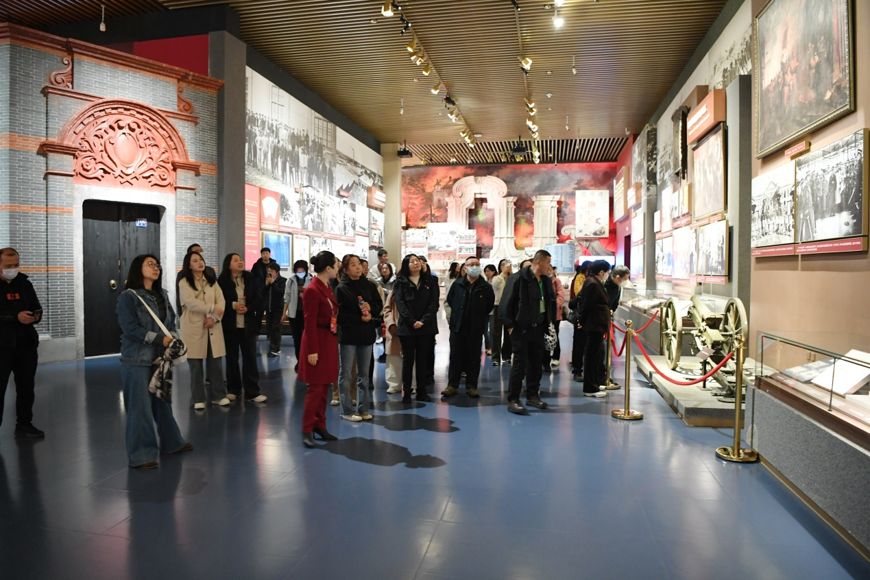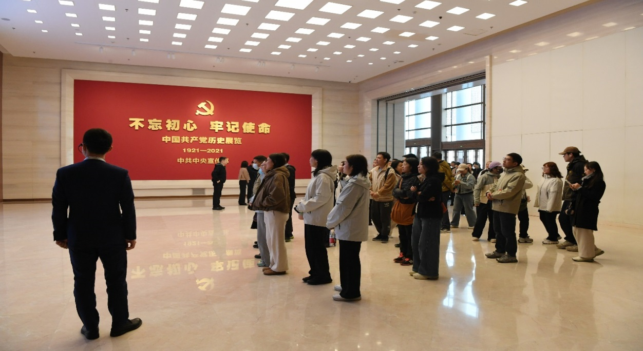 活動首站,大家走進中國共產黨歷史展覽館,懷著崇敬之情重溫中國共產黨105年來走過的輝煌而艱辛的歷程。大家認真聆聽講解員深情細致的講解,不時在一件件珍貴文物、一幅幅歷史圖片、一個個復原場景前駐足凝視,深切感悟中國共產黨從開天辟地到改天換地、從翻天覆地到驚天動地的百年奮斗歷程。