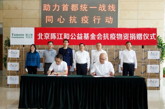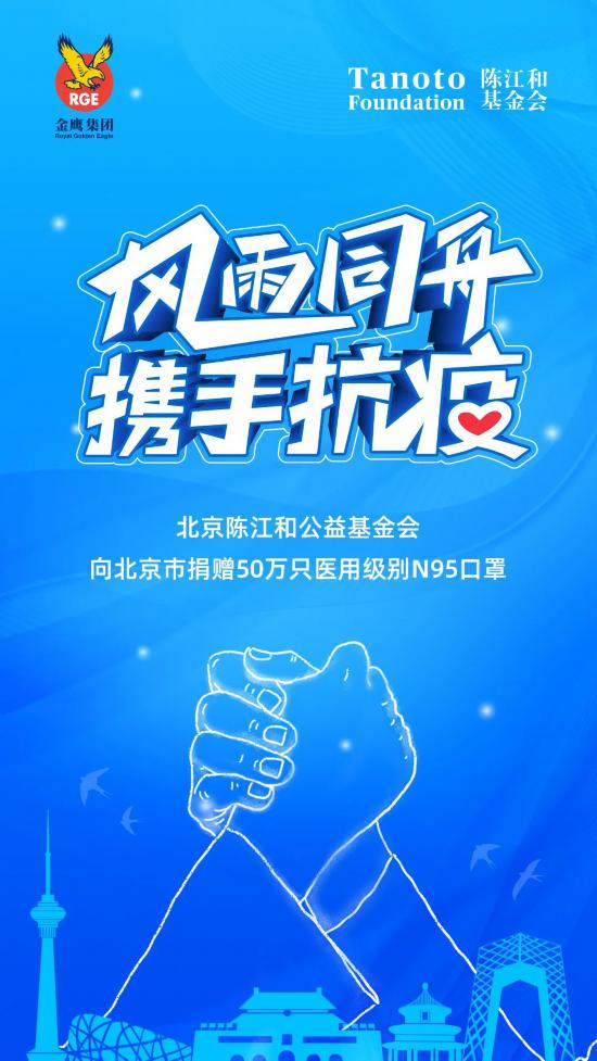 5月20日,北京陈江和公益基金会向北京市赠送防疫物资交接仪式在北京市侨联举行。由陈江和基金会紧急采购和捐赠的50万只医用级别N95口罩将由北京市侨联迅速发放到有关医院、社区和部门。这是两年多来金鹰集团及北京陈江和公益基金会在中国开展的第7次抗疫捐赠。