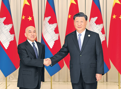 习近平指出,今年是中柬建交65周年和中柬友好年。我同西哈莫尼国王两次会面,体现了中柬亲如一家的深厚情谊。前不久,我在北京会见洪玛奈首相,就传承世代友好、深化全面战略合作达成重要共识。中方珍视同柬埔寨王室的特殊友谊,高度重视中柬关系发展,愿同柬方一道,推动中柬命运共同体建设走深走实。