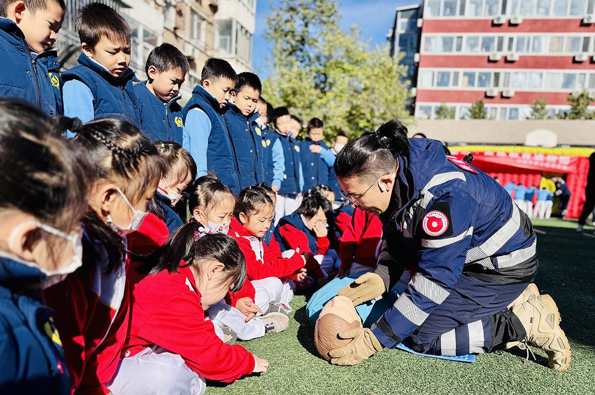 11月9日是第33个全国消防日,为进一步加强校园安全工作,增强孩子们的消防安全意识,普及火灾逃生常识,提高自防自救能力,中国华侨公益基金会走进北京育才学校、北京怡海小学,开展“侨爱心·应急教育”进校园活动。围绕心肺复苏、火灾逃生、结绳技巧、水域施救、医疗急救知识及实操技巧等方面,通过讲演训结合的方式对学校教职工、学生进行培训演练。
