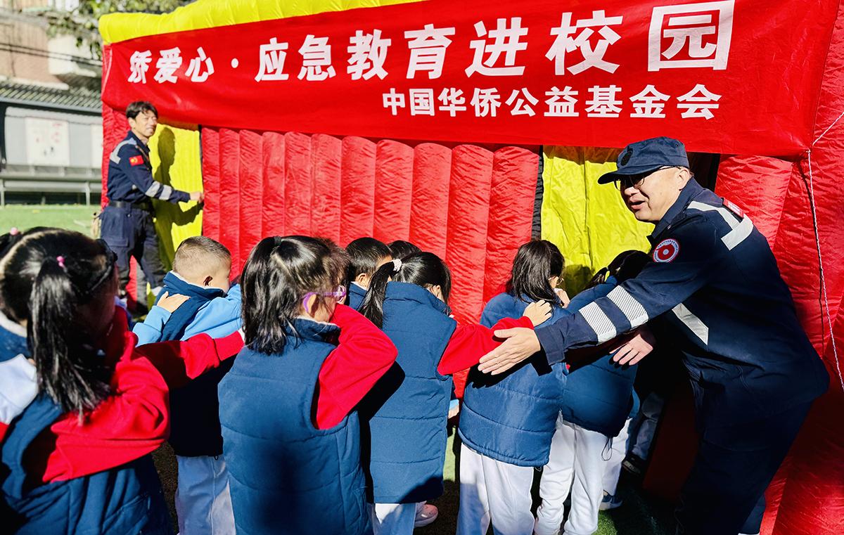 中国华侨公益基金会“侨爱心·应急教育”进校园系列活动,旨在针对中小学生面对多发的危险与灾害,建立防灾减灾救灾宣传教育长效机制、引导社会力量有序参与,帮助孩子建立意外和灾难应对风险意识,有效提升了学校师生对突发事件应急响应处理能力,降低生命及财产损失。自2023年以来,分别在北京、河北、四川等地开展安全教育进校园演练活动近50场,17所学校10000余名师生直接受益。