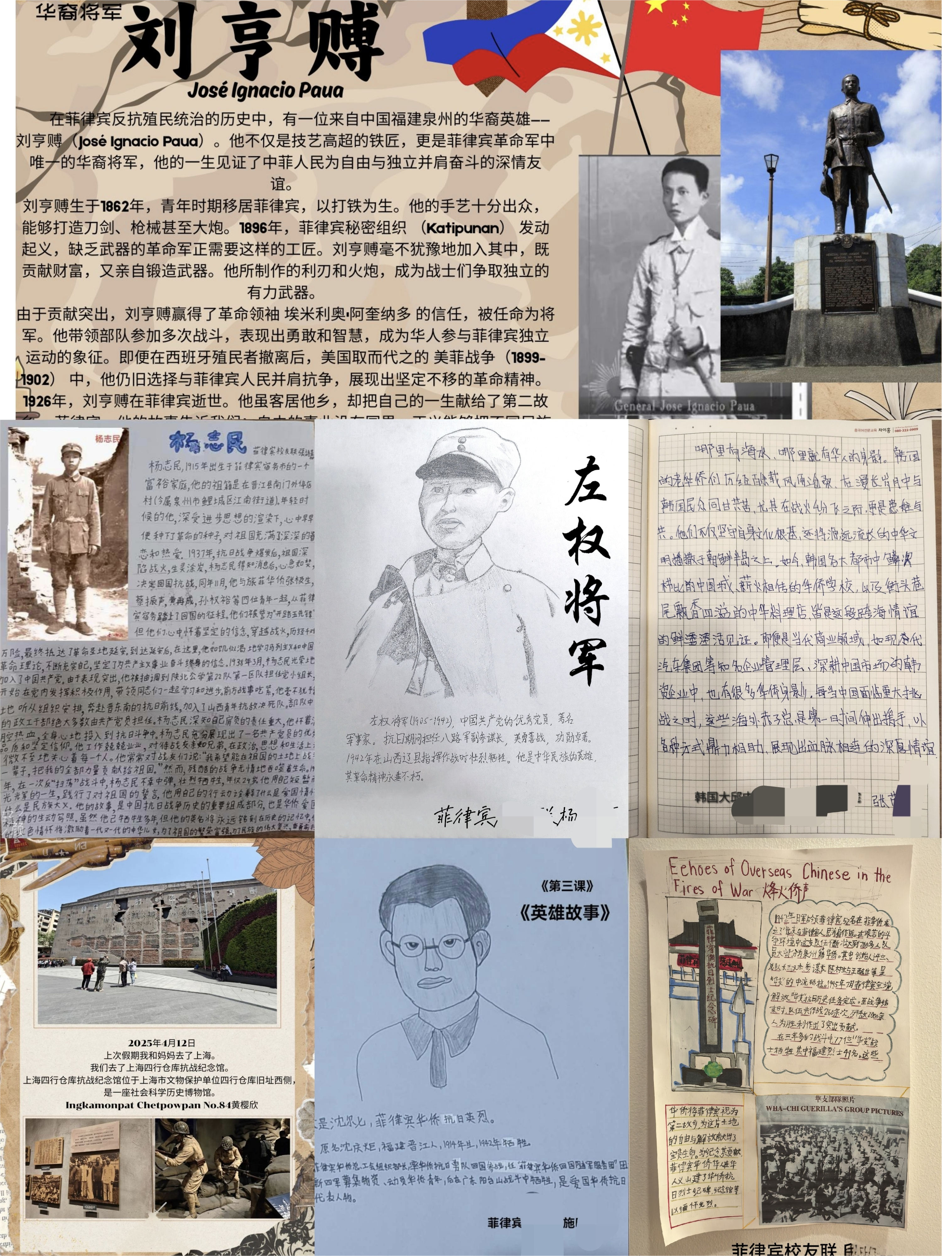 课后,海外华裔青少年们创作提交了丰富多彩的作品,用文字、语言、视频等生动记录学习心得。营员们用心发现身边的“历史脚印”,走进抗战博物馆等,感受历史长河中沉淀的民族记忆;他们也认真挖掘身边的“华侨华人英雄事迹”——无论是远赴海外艰苦创业却始终心系桑梓的侨胞典范,还是在关键时刻挺身而出、为国家发展与民族大义贡献力量的英雄人物。他们将这些鲜活的故事转化为生动的文字和影像素材,让这些曾“藏于身边”的英雄故事被更多人听见、看见,让侨界先辈的精神力量在新时代的传播中持续传递、感染更多人。