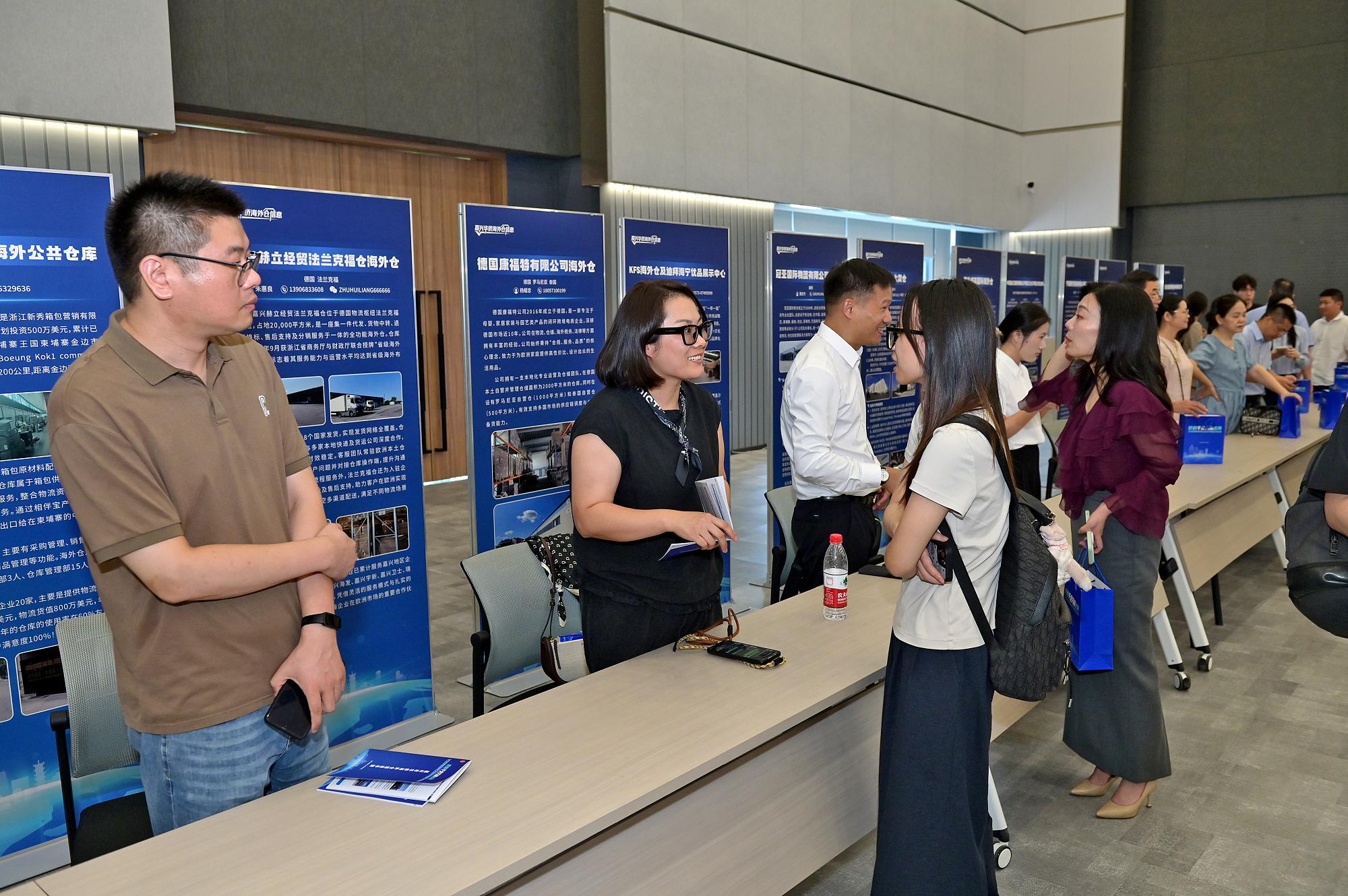 在现场对接环节中,嘉兴市参会企业代表围绕海外市场合作、政策申报、金融服务等需求,与海外仓、法律及金融等服务平台单位的工作人员深入交流,20余家企业达成初步合作意向。