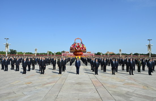 9月30日上午,党和国家领导人习近平、李强、赵乐际、王沪宁、蔡奇、丁薛祥、李希、韩正等来到北京天安门广场,出席烈士纪念日向人民英雄敬献花篮仪式。新华社记者 燕雁 摄