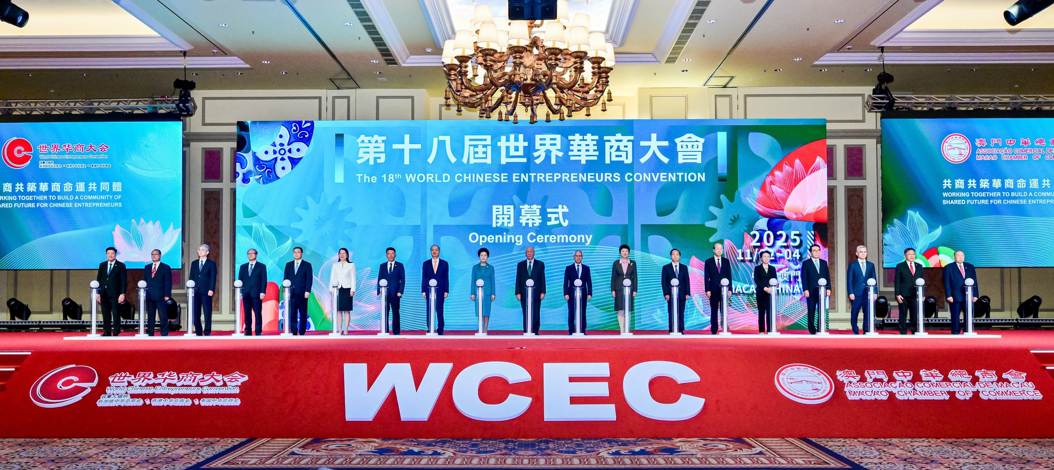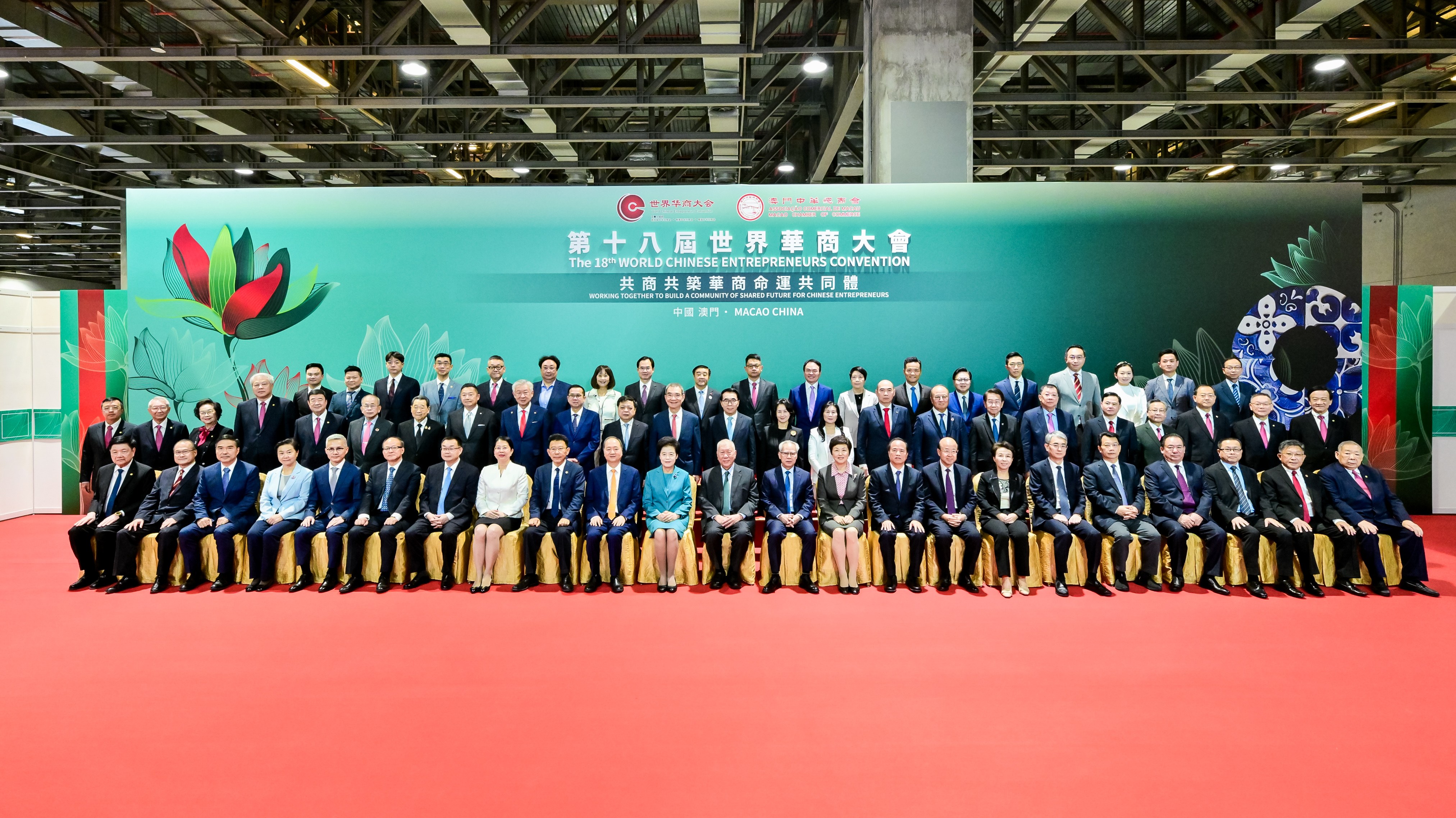 全国政协副主席何厚铧、咸辉,中央和国家机关有关部门、有关团体负责同志,澳门特别行政区行政长官岑浩辉及相关政府官员,中央驻澳机构主要负责同志,以及来自全球50多个国家和地区的华商代表、专家学者、政企界人士共4000余人参会。