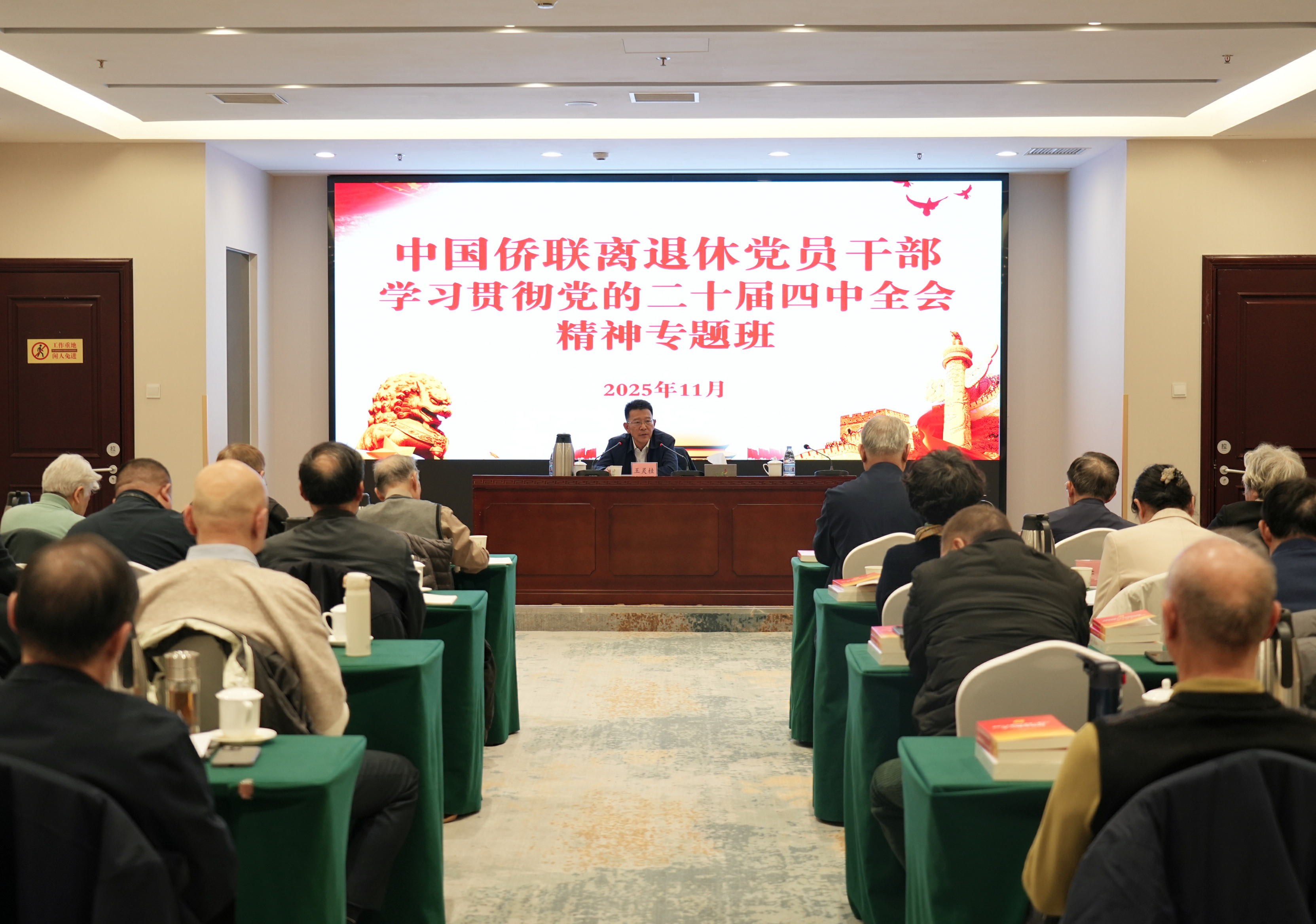 11月17日下午,中国侨联党组书记、主席王灵桂出席离退休党员干部学习贯彻党的二十届四中全会精神专题班开班式并作辅导报告。中国侨联党组成员、副主席,直属机关党委书记连小敏主持开班式。中国侨联顾问林兆枢、李祖沛、王永乐、陈兰通、唐闻生、林淑娘、乔卫出席活动。