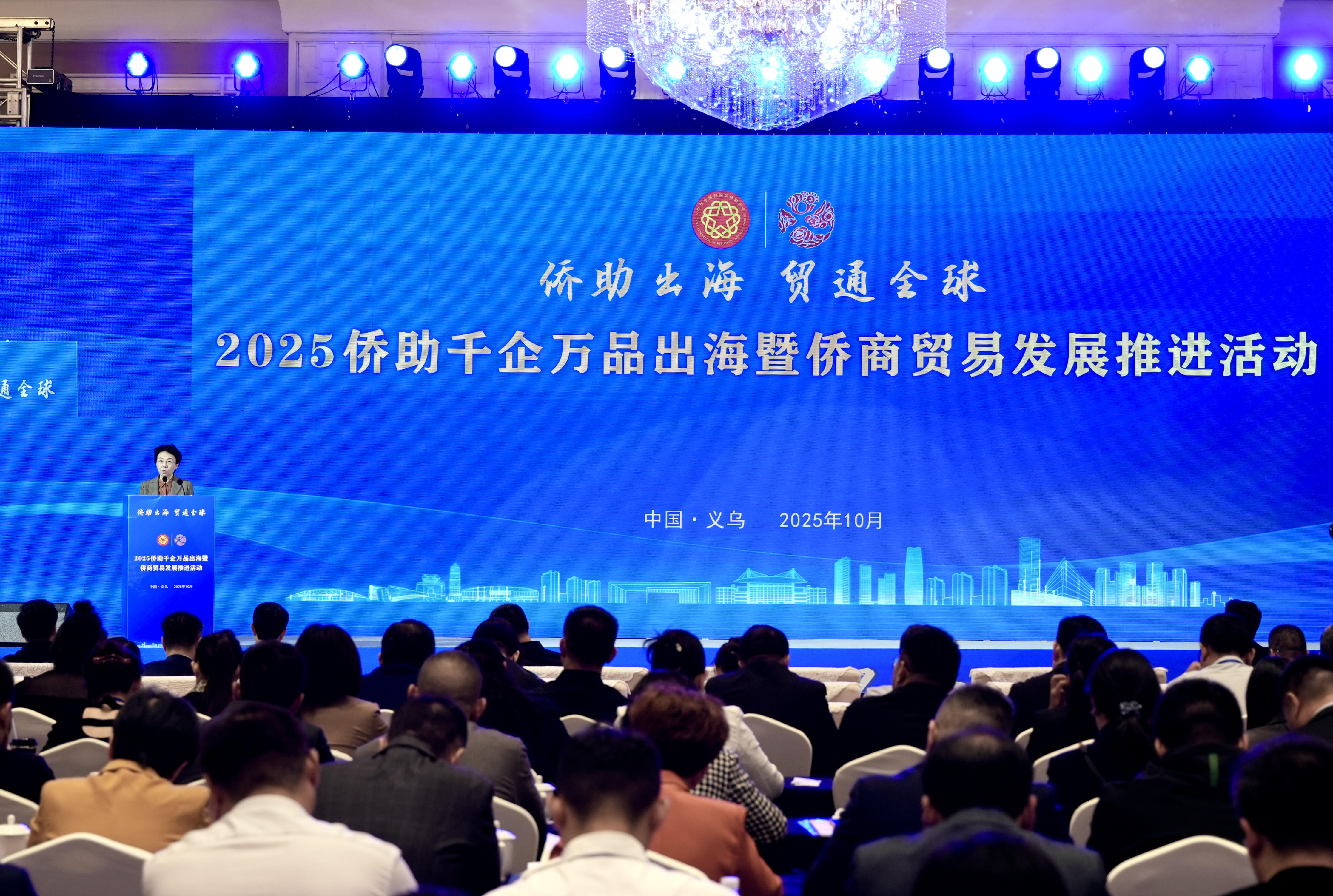 10月23日,“侨助出海 贸通全球”2025侨助千企万品出海暨侨商贸易发展推进活动在浙江金华义乌举行。中国侨联副主席程红,浙江省副省长卢山,金华市有关负责同志出席开幕式并致辞。浙江省侨联党组书记、主席庄莉萍主持开幕式。来自全国侨联系统代表和海内外侨商侨领240余人参会。