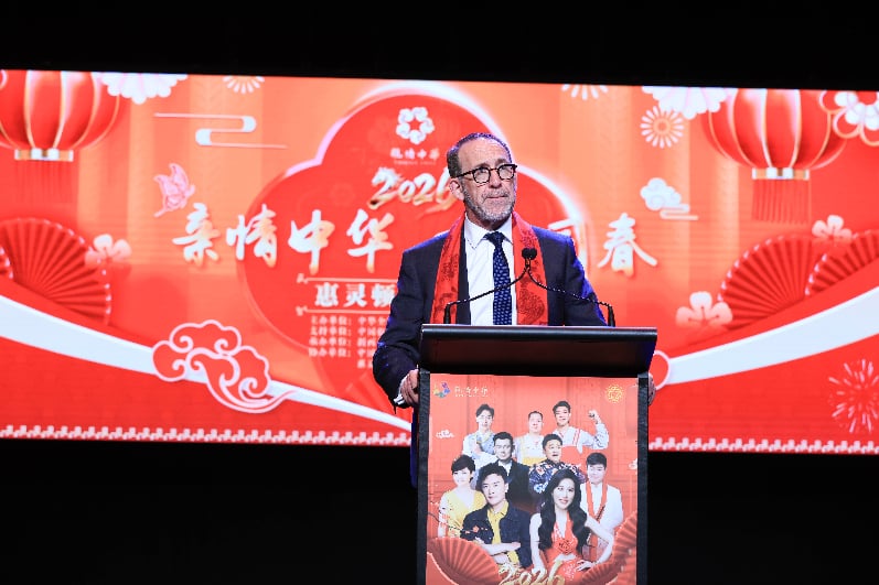 中国侨联文化交流部副部长、2026“亲情中华·四海同春”慰侨演出亚太团团长郭启华在致辞中表示,“共同的根、共同的魂、共同的梦,让海内外中华儿女的心紧紧连在一起。希望这场演出,既以文传情,传递祖(籍)国对广大侨胞的关心惦念,又以文传声,讲述一个生机勃勃、欣欣向荣的中国。”