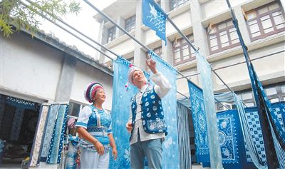 英国籍视频博主斯图尔特·维金在云南大理体验白族扎染技艺。吴 桐摄