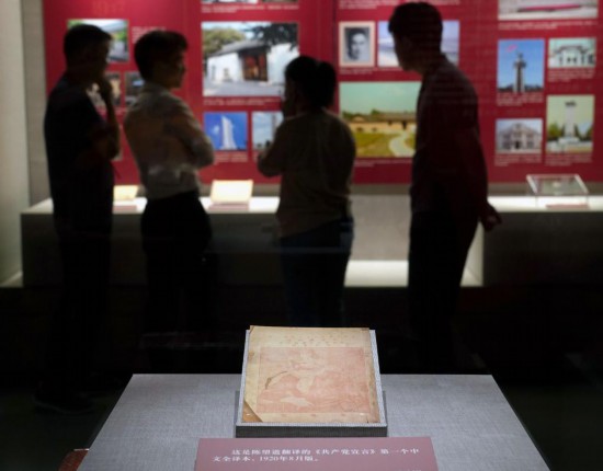 2023年7月25日,在中共一大纪念馆内展出的陈望道译《共产党宣言》首个中文全译本。新华社记者 刘颖 摄